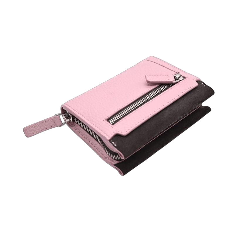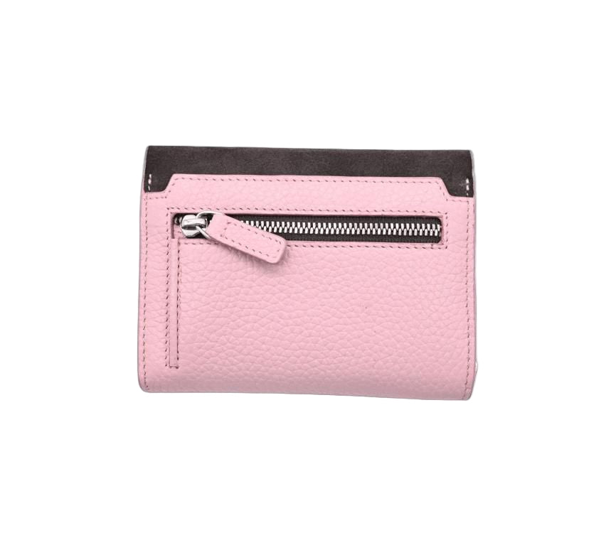 Als elegante Ergänzung zur Vionne Tote verkörpert dieses kompakte Portemonnaie dieselbe Balance aus Funktionalität und zeitloser Eleganz. Handgefertigt aus hochwertigem Rindsleder in Kombination mit weichem, dunkelgrauem Wildleder bietet es einen luxuriösen, haptischen Kontrast und feminine Raffinesse in einem zarten Roséton.