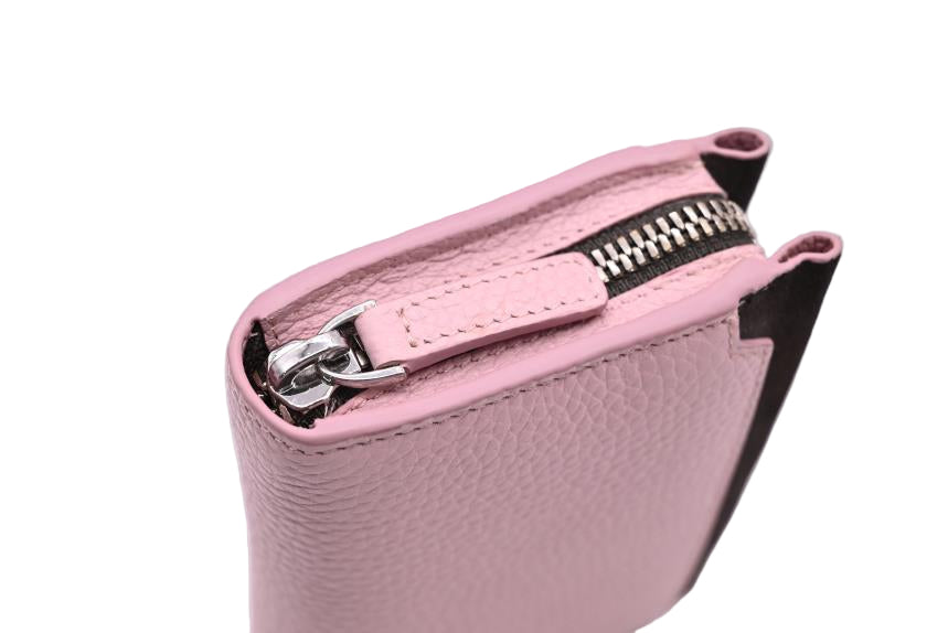 • Reißverschlussfach für Münzen mit polierter Silberhardware
