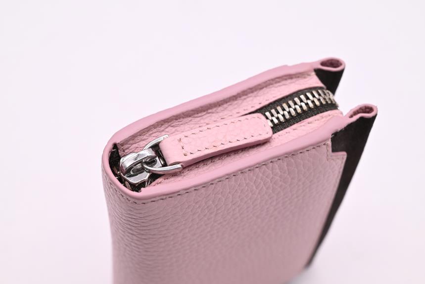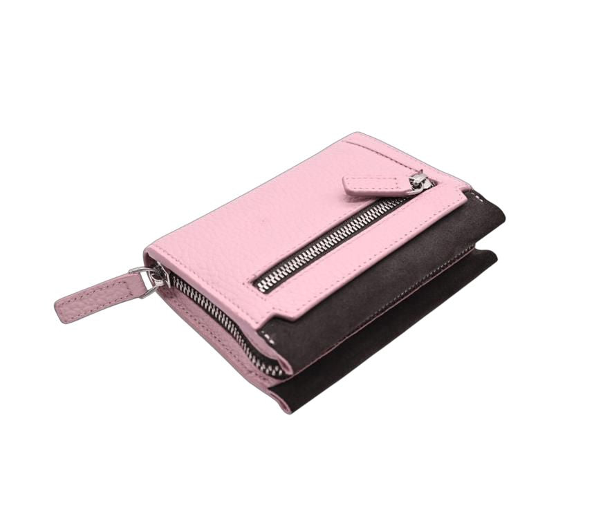 A refined companion to The Vionne Tote, this compact wallet embodies the same balance of functionality and timeless elegance. Handcrafted from premium Cow  leather paired with soft dark grey suede, it offers a luxurious tactile contrast and modern femininity in a delicate rose tone.